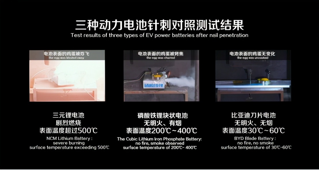 比亚迪官方在互动渠道表明,现在公司旗下新能源乘用车车型已完成全系搭载刀片电池。揭露材料显现,刀片电池是比亚迪自主研制的新式磷酸铁锂电池。比较三元锂电池,刀片电池具有安全性高、循环寿命长、成本低的特色,能量密度可达 180wh/kg,体积比上一代比亚迪电池添加近 50%,大大提高了车辆的全体续航才能。