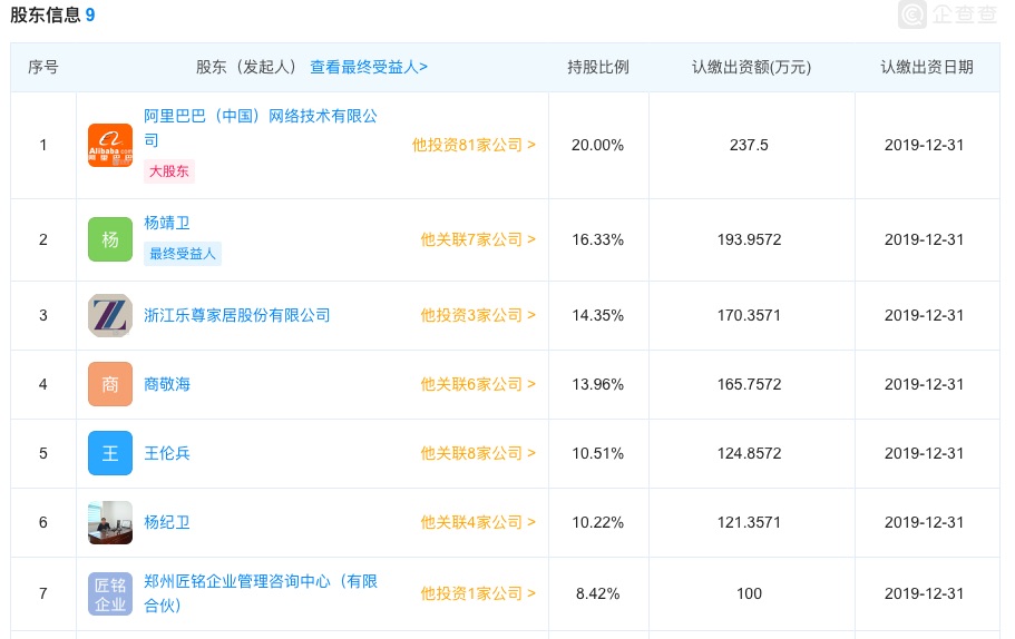 据企查查信息显现,3月14日,阿里巴巴入股河南匠多多信息科技有限公司,控股份额 20%,公司实践操控人为淘宝我国控股有限公司。