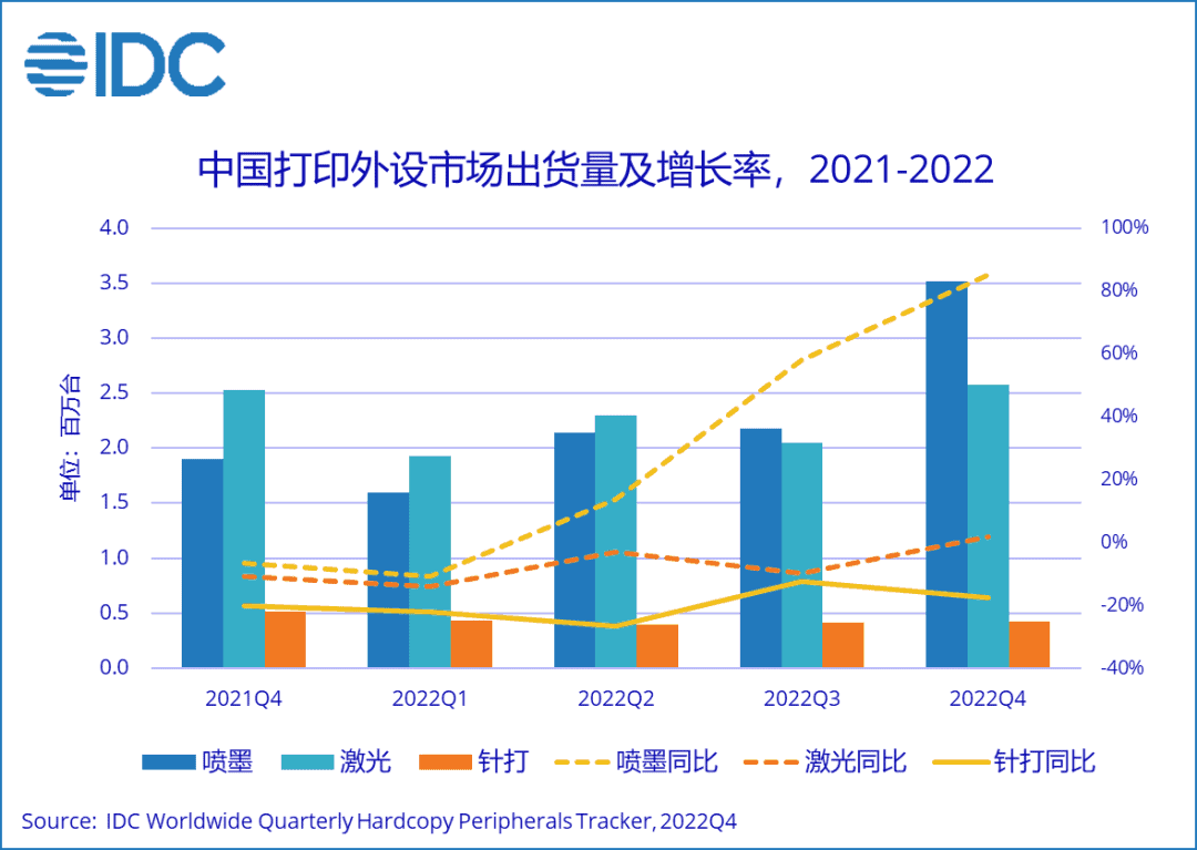 IDC:消费需求爆发,2022 年四季度中国打印设备出货量创历史新高